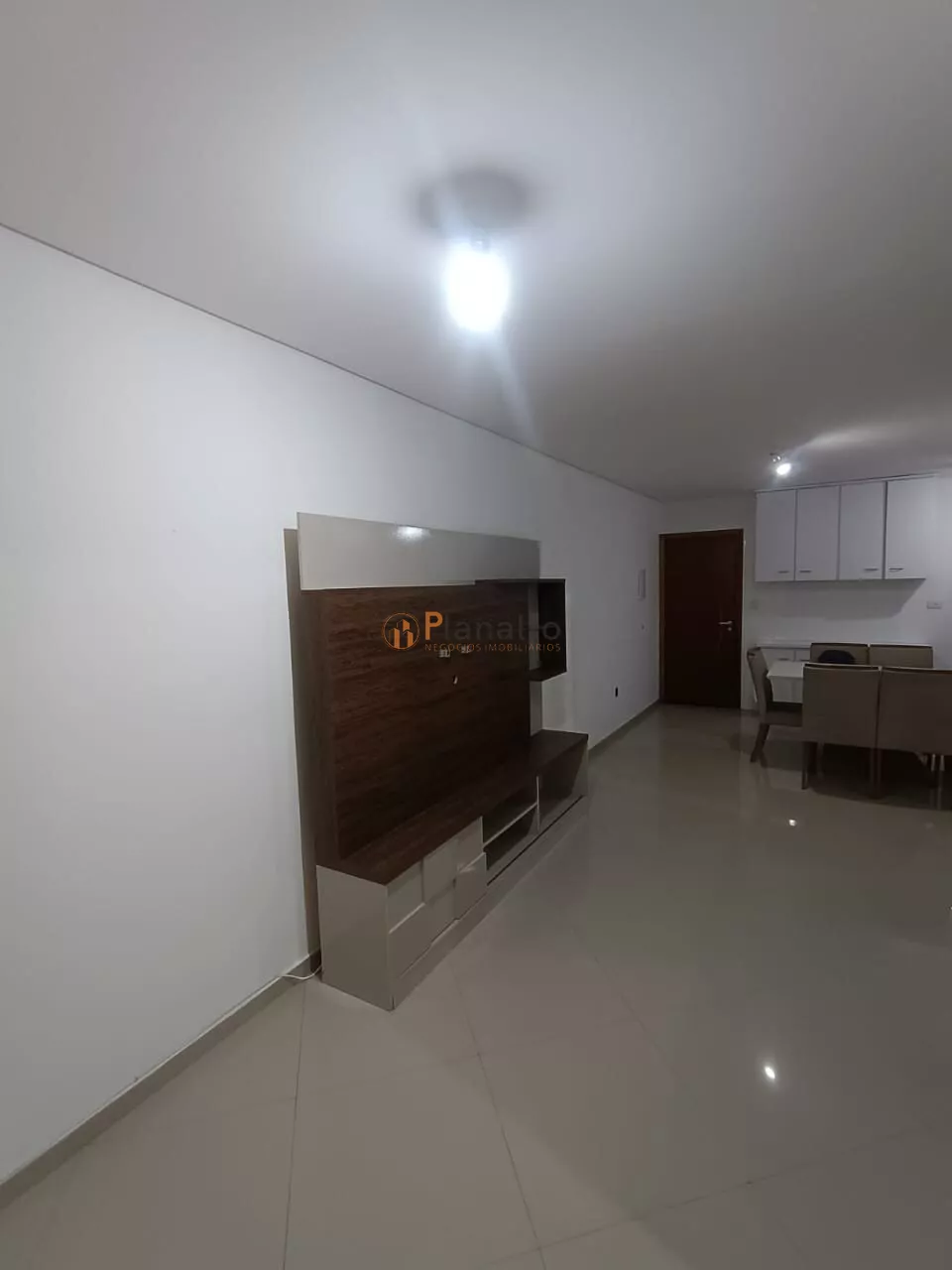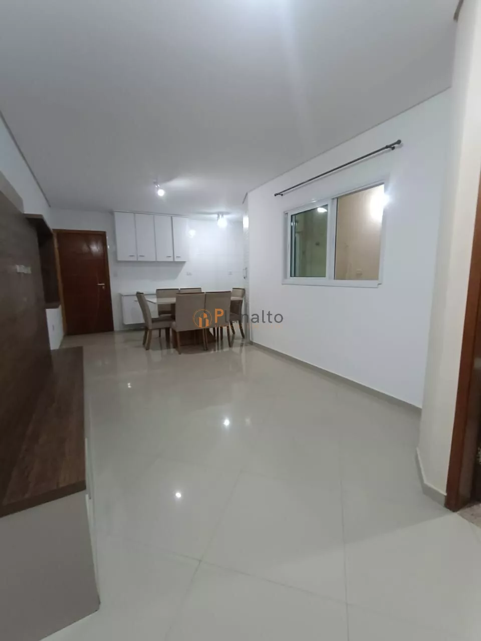 Sala de estar integrada com sala de jantar e cozinha